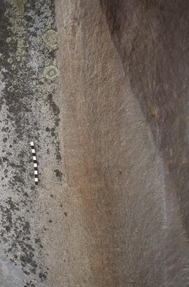 Brief description of site: The site is on a 2m2 surface on large boulder that is slightly raised on a hill side. The site is easily accessible with no shelter. Looking outwards, into another rocky hill, limited view.