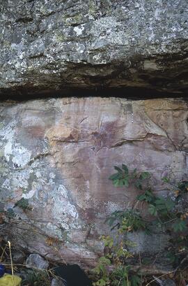 Brief description of art: Namulundu Spirit Shrine. The art consists of 4 horizontal rows of dots applied by finger in red.