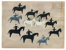 37. Horses and riders. Hats.
