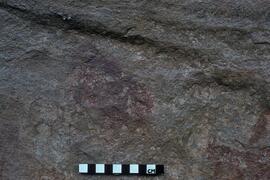 Brief description of art: This site consists of a death scene in Panel D, a strange maned figure with a long tail in Panel E. There is also a scalloped line with a figure in front.