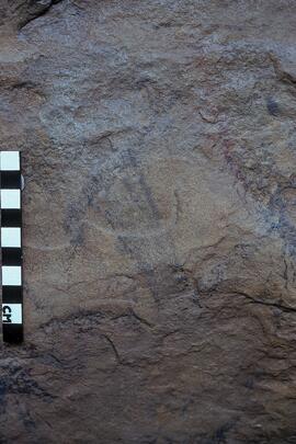 Brief description of art: This site consists of a death scene in Panel D, a strange maned figure with a long tail in Panel E. There is also a scalloped line with a figure in front.