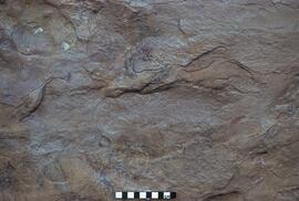 Brief description of art: This site consists of a death scene in Panel D, a strange maned figure with a long tail in Panel E. There is also a scalloped line with a figure in front.
