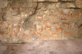 There are in excess of 300 individual San rock-paintings in the site. These paintings occur in two giant panels on two tiers. The size, quantity, quality and variety of the imagery shows that the site was not only used as a practical living shelter, but also a locus of great spiritual importance to the San. The paintings are too numerous to discuss individually and I highlight certain image clusters: