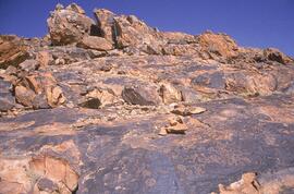 Historic Period rock engravings: Usually fresh-looking there are a number of instances of 'graffiti' where people have pecked out names and dates. This 'graffiti' often has historical value as it chronicles the arrival and occupation of this landscape by White settlers as well as latter-day KhoeSan groups such as the Nama. Thus, much of this 'graffiti' is, in fact, Historical period rock art. A number (perhaps 20) of the animal engravings have been made by non-Bushman people. These include a horse, dog and some of the larger megaherbivores like elephant, buffalo and rhino.