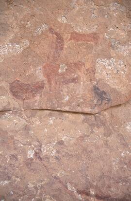Other paintings: These are scattered among the upper tier of the shelter and include eland, some white buck -possibly mountain rhebuck and fragments of human figures.