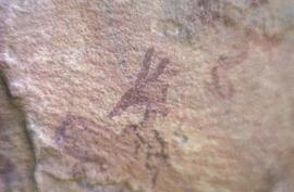 It was late in life when Joan Simpson read Alex Wilcox' book Rock Paintings of the Drakensburg, and was inspired to take up rock art photography as a hobby. She enjoyed walking, hiking and hunting for possible rock art sites. Her journals note how she became so invested in recording rock art, she speaks of deriving "enormous pleasure from searching for paintings and recording them, and identifying the kind of animals depicted, the weapons and dress of the people". However the aspect of rock art that Simpson found most compelling was its artistic merit. In a journal entry she states: "…for me, overshadowing everything else, is the enormous pleasure in the artistic merits of the paintings themselves… colour … shading … perspective … the skill needed to draw a beautiful eland… when the only implements an artist had were fashioned by himself… the sense of movement, … of pattern, The grouping, the story, sometimes the humour which a panel may tell. All these things enthralled me." Simpson was enthusiastic in her work, making accurate notes on the slides themselves, measuring individual figures, noting site names and dates when taken. Her dedication to her hobby is evident in her investment in photographic equipment, which included: a camera, tripod, light meter, flash, rings, extra film, a notebook and a foot-rule. She would give illustrated lectures and was attempting to write a book on the subject. Living in Harrismith, Free State, Simpson had access to much of the rock art in that province, as a result, her most sizeable collection of slides is representative of many sites in the Free State. Simpson later moved to Natal and recorded a significant number of sites in this area. Her Collection also includes some images from Zimbabwe and Spain. In 1981, after her death, Simpson's slides, notes and books were given to the Natal Museum Archaeology department as per her will. A decade later the Natal Museum took the decision to give Simpson's Free State slides to the National Museum in Bloemfontein to be included in their archive. Simpson began photographing rock art in the early 1960's and continued to do so into her old age in the 1970's. Her slides therefore hold great value as archival resources and as indicators of weathering and deterioration of the rock art recorded