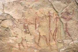 It was late in life when Joan Simpson read Alex Wilcox' book Rock Paintings of the Drakensburg, and was inspired to take up rock art photography as a hobby. She enjoyed walking, hiking and hunting for possible rock art sites. Her journals note how she became so invested in recording rock art, she speaks of deriving "enormous pleasure from searching for paintings and recording them, and identifying the kind of animals depicted, the weapons and dress of the people". However the aspect of rock art that Simpson found most compelling was its artistic merit. In a journal entry she states: "…for me, overshadowing everything else, is the enormous pleasure in the artistic merits of the paintings themselves… colour … shading … perspective … the skill needed to draw a beautiful eland… when the only implements an artist had were fashioned by himself… the sense of movement, … of pattern, The grouping, the story, sometimes the humour which a panel may tell. All these things enthralled me." Simpson was enthusiastic in her work, making accurate notes on the slides themselves, measuring individual figures, noting site names and dates when taken. Her dedication to her hobby is evident in her investment in photographic equipment, which included: a camera, tripod, light meter, flash, rings, extra film, a notebook and a foot-rule. She would give illustrated lectures and was attempting to write a book on the subject. Living in Harrismith, Free State, Simpson had access to much of the rock art in that province, as a result, her most sizeable collection of slides is representative of many sites in the Free State. Simpson later moved to Natal and recorded a significant number of sites in this area. Her Collection also includes some images from Zimbabwe and Spain. In 1981, after her death, Simpson's slides, notes and books were given to the Natal Museum Archaeology department as per her will. A decade later the Natal Museum took the decision to give Simpson's Free State slides to the National Museum in Bloemfontein to be included in their archive. Simpson began photographing rock art in the early 1960's and continued to do so into her old age in the 1970's. Her slides therefore hold great value as archival resources and as indicators of weathering and deterioration of the rock art recorded