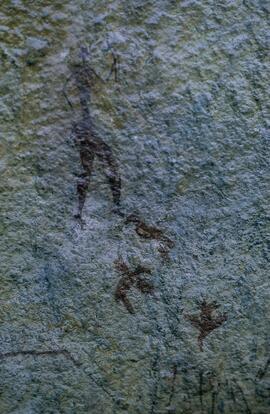 It was late in life when Joan Simpson read Alex Wilcox' book Rock Paintings of the Drakensburg, and was inspired to take up rock art photography as a hobby. She enjoyed walking, hiking and hunting for possible rock art sites. Her journals note how she became so invested in recording rock art, she speaks of deriving "enormous pleasure from searching for paintings and recording them, and identifying the kind of animals depicted, the weapons and dress of the people". However the aspect of rock art that Simpson found most compelling was its artistic merit. In a journal entry she states: "…for me, overshadowing everything else, is the enormous pleasure in the artistic merits of the paintings themselves… colour … shading … perspective … the skill needed to draw a beautiful eland… when the only implements an artist had were fashioned by himself… the sense of movement, … of pattern, The grouping, the story, sometimes the humour which a panel may tell. All these things enthralled me." Simpson was enthusiastic in her work, making accurate notes on the slides themselves, measuring individual figures, noting site names and dates when taken. Her dedication to her hobby is evident in her investment in photographic equipment, which included: a camera, tripod, light meter, flash, rings, extra film, a notebook and a foot-rule. She would give illustrated lectures and was attempting to write a book on the subject. Living in Harrismith, Free State, Simpson had access to much of the rock art in that province, as a result, her most sizeable collection of slides is representative of many sites in the Free State. Simpson later moved to Natal and recorded a significant number of sites in this area. Her Collection also includes some images from Zimbabwe and Spain. In 1981, after her death, Simpson's slides, notes and books were given to the Natal Museum Archaeology department as per her will. A decade later the Natal Museum took the decision to give Simpson's Free State slides to the National Museum in Bloemfontein to be included in their archive. Simpson began photographing rock art in the early 1960's and continued to do so into her old age in the 1970's. Her slides therefore hold great value as archival resources and as indicators of weathering and deterioration of the rock art recorded