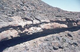The site was obviously a favoured location for the San or 'Bushmen' of times past. Underneath the dung overburden is archaeological deposit that is at least 0.5 m deep. This deposit is mostly sandy and loose. There are numerous patches and even 'carpets' of lithics (stone tools) on the cave floor. These lithics are made from opalines (also known as crypto-crystalline silicates), which are volcanic fine-grained gemstone-like rocks that get washed down from the basalt mountains into streams and rivers. There are also some hornfels (also known as indurated shale or lydianite) stone tools. Hornfels is the rock that makes up river pebbles. The whole range of stone tools and stone tool manufacture is visible at the site. There are chips, chunks and cores, which indicate that stone tools were made in the cave. These tools are also present in their finished form. For example, there are sidescrapers and endscrapers - used to work leather; adzes - used to work wood; and flakes - used as general purpose cutting tools. Further there is evidence of the preservation of bone and there is plenty of charcoal, from human made fires, veld fires and vitrified dung from when the stock's dung internally combusted. A single ostrich eggshell fragment was noted. There are areas on the rocks, which have been used as lower grindstones to grind seeds and ochre. There are also some grooves used to sharpen or straighten metal objects. Small fragments of grit-tempered undecorated pottery are also present. This pottery is probably not San but relates to Black farmers' and herders' occupation of the cave. The cave has numerous stone walls and structures - those with right angle corners being made by White farmers, those with round angles being made by Black farmers and herders.